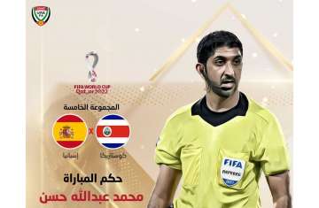 أسندت لجنة الحكام بالاتحاد الدولي لكرة القدم "فيفا"، إلى طاقم التحكيم الإماراتي بقيادة محمد عبدالله حسن، مهمة إدارة مباراة إسبانيا وكوستاريكا المقرر إقامتها بعد غد “الأربعاء” في افتتاح منافسات المجموعة الخامسة لبطولة كأس العالم 2022