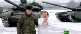 واستقدم يكازانتسيف 16 دبابة حديثة T-72B3، اصطفت على شكل قلب كبير ليس أكبر من