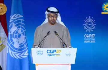 ألقى رئيس دولة الإمارات العربية المتحدة، سمو الشيخ محمد بن زايد آل نهيان، كلمة خلال افتتاح فعاليات الشق الرئاسي من الدورة الـ27 لمؤتمر الدول الأطراف لاتفاقية الأمم المتحدة الإطارية بشأن المناخ (COP27) بمدينة شرم الشيخ.