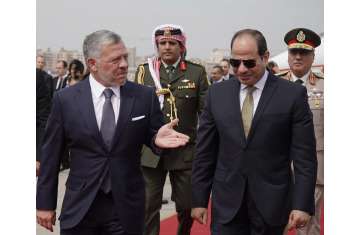 استقبل الرئيس المصري عبد الفتاح السيسي، صباح اليوم الأحد، بمدينة شرم الشيخ جلالة الملك عبد الله الثاني بن الحسين، ملك المملكة الأردنية الهاشمية.