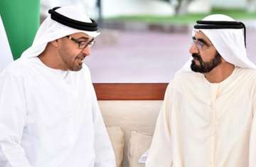 تبادل صاحب السمو الشيخ محمد بن زايد آل نهيان ولي عهد أبوظبي نائب القائد الأعلى للقوات المسلحة مع أخيه صاحب السمو الشيخ محمد بن راشد آل مكتوم نائب رئيس الدولة رئيس مجلس الوزراء حاكم دبي "رعاه الله" .. التهاني بمناسبة عيد الفطر المبارك .. سائلين