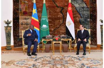 استقبل الرئيس المصري، عبد الفتاح السيسي مساء اليوم بقصر الاتحادية الرئيس فيليكس تشيسيكيدى، رئيس جمهورية الكونغو الديمقراطية، والوفد المرافق له، وذلك بحضور السيد سامح شكري وزير الخارجية والدكتور محمد عيد العاطي وزير الموارد المائية والري والسيد عباس كامل