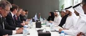 بحث علي ماجد المنصوري رئيس دائرة التنمية الاقتصادية ابوظبي بمقر الامانة العامة للمجلس التنفيذي بأبوظبي مع وفد حكومي وتجاري من جمهورية الارجنتين سبل تعزيز التعاون وتعزيز العلاقات الاقتصادية في مجالات الاغذية والثروة الحيوانية والطاقة والسياحة والموانئ
