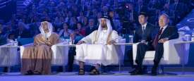 شهد الشيخ محمد بن زايد آل نهيان ولي عهد أبوظبي نائب القائد الأعلى للقوات المسلحة ونور سلطان نزار باييف رئيس جمهورية كازاخستان الصديقة افتتاح مركز أستانا المالي الدولي.