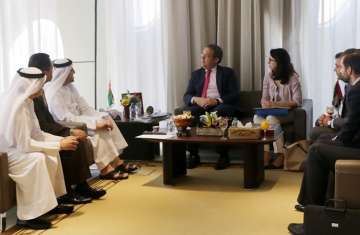 بحث سعادة المهندس محمد أحمد بن عبد العزيز الشحي وكيل وزارة الاقتصاد للشؤون الاقتصادية وسعادة خوسيه لويس كايسر المدير العام لمكتب التجارة الدولية والاستثمار في مملكة إسبانيا والوفد المرافق له سبل تنمية التعاون الاقتصادي والتجاري والاستثماري بين