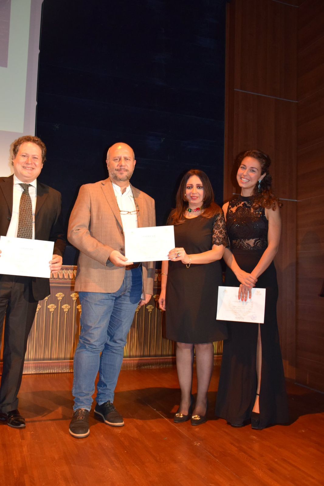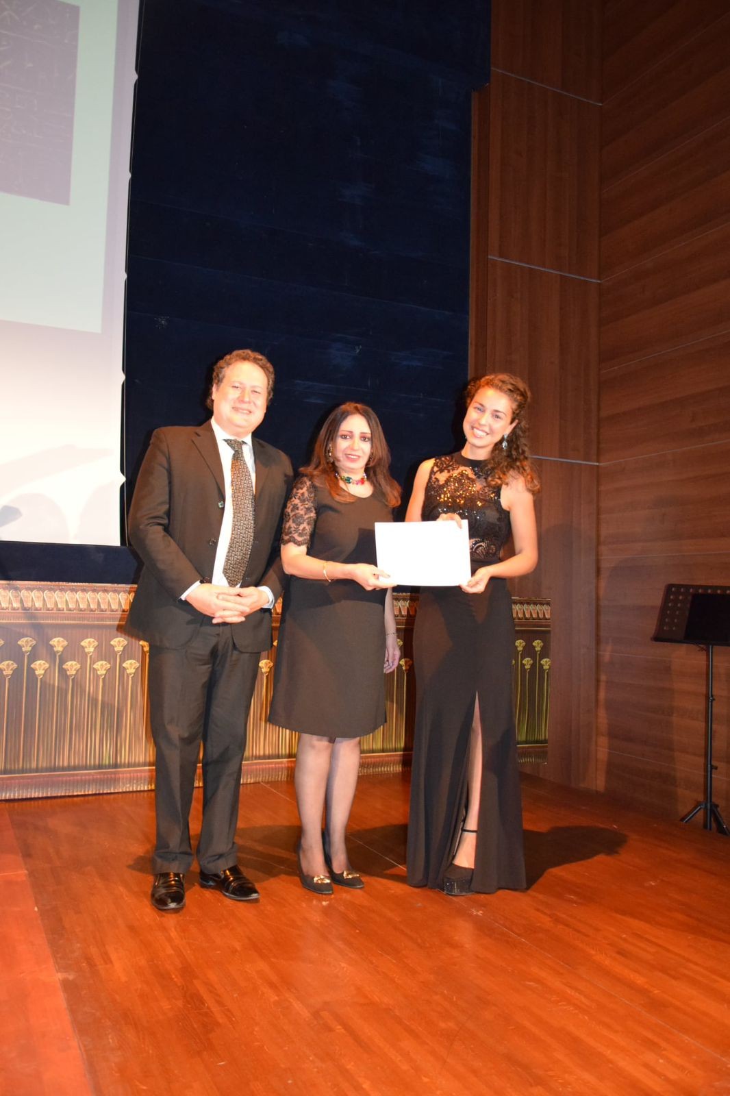 واختُتمت الأمسية بقيام الأستاذة الدكتورة رانيا يحيى بتقديم شهادات تقدير لكل من الأستاذ الدكتور إيمانويل شامبيني، والمايسترو باولو شيبيليا، والسوبرانو جوليا ليبوري، تقديرًا لمشاركتهم القيّمة في هذه الأمسية الثقافية والفنية الرفيعة.