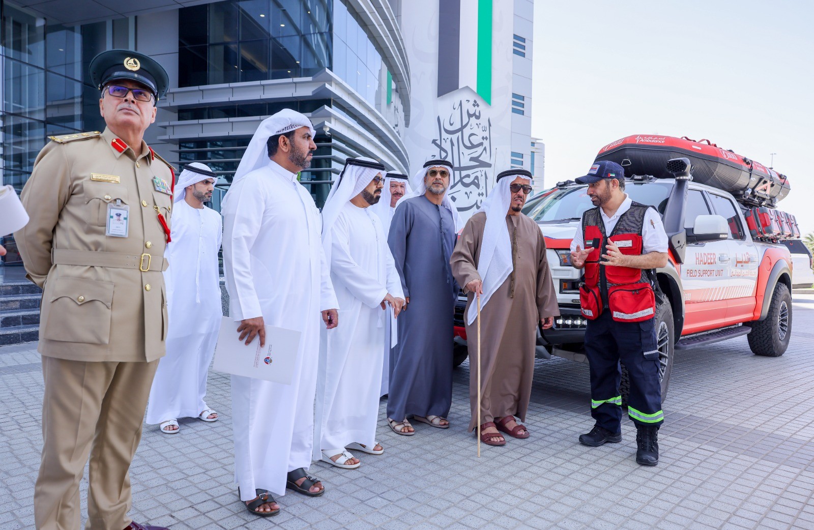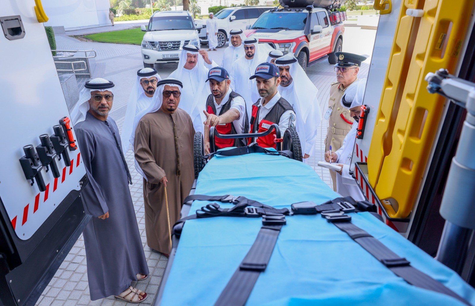 وأكد أنه ما شاهده يعد تطور نوعي كبير يتم بأيادٍ إماراتية في مجال تطوير الآليات والمركبات التابعة لخدمات الإسعاف بدبي، مؤكداً على أهمية هذا التطور في تعزيز منظومة العمل الميداني، وتم خلال العرض استعراض مركبة إسعافيه من نوع "تورسوس" متخصصة ومجهزة بأحدث المعدات والأجهزة الطبية والأنظمة التشغيلية لدعم الفرق الميدانية في الحالات الطارئة والحوادث الكبرى خصوصاً في المناطق الوعرة أو أثناء الكوارث الطبيعية، بما يعكس مستوى الجاهزية العالية والتطور الذي وصلت إليه منظومة الإسعاف في دبي وقدرتها على التعامل مع مختلف السيناريوهات بكفاءة تضمن تقديم رعاية طبية متقدمة وسريعة في موقع الحدث.