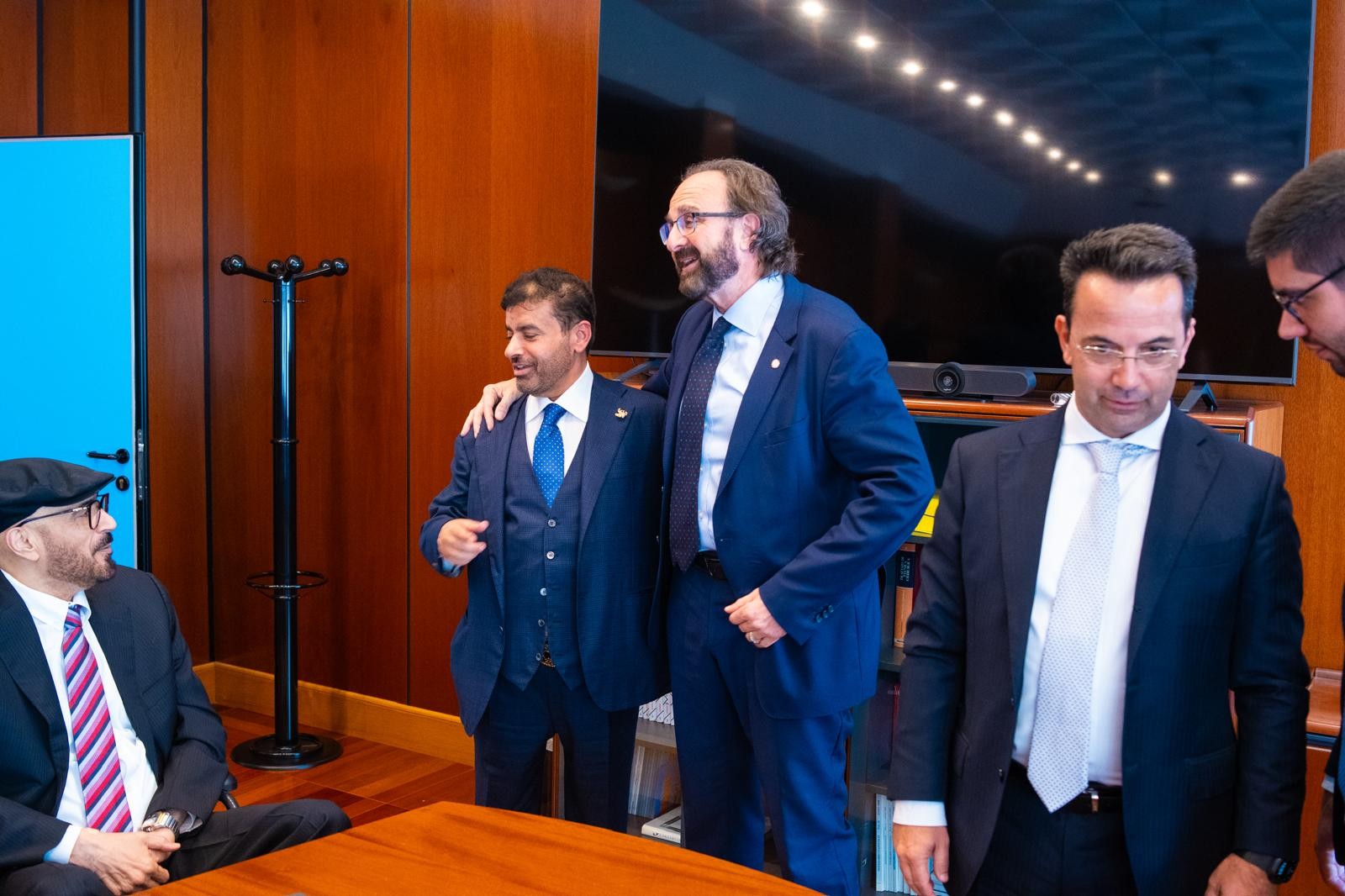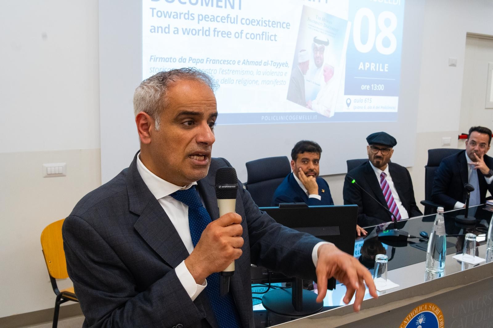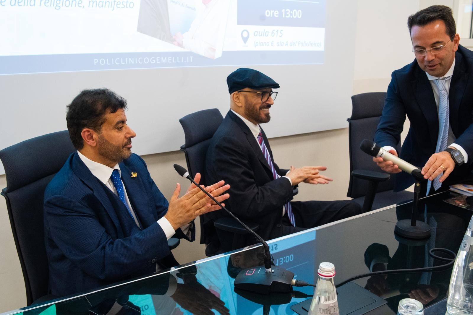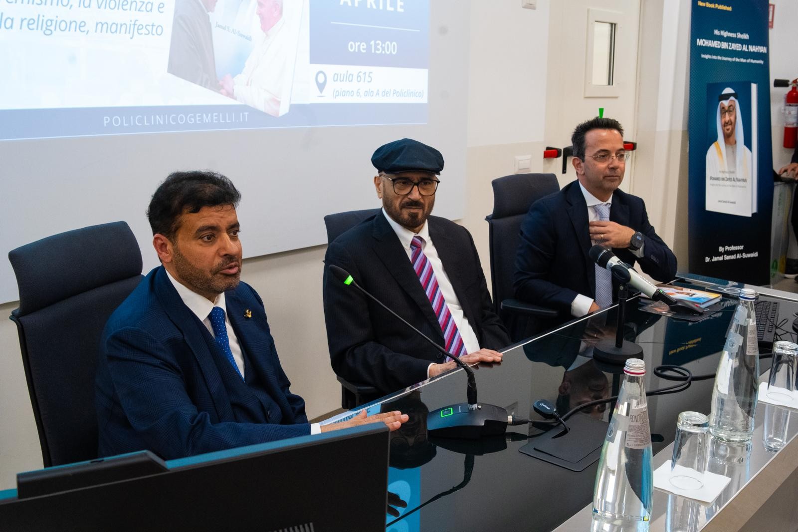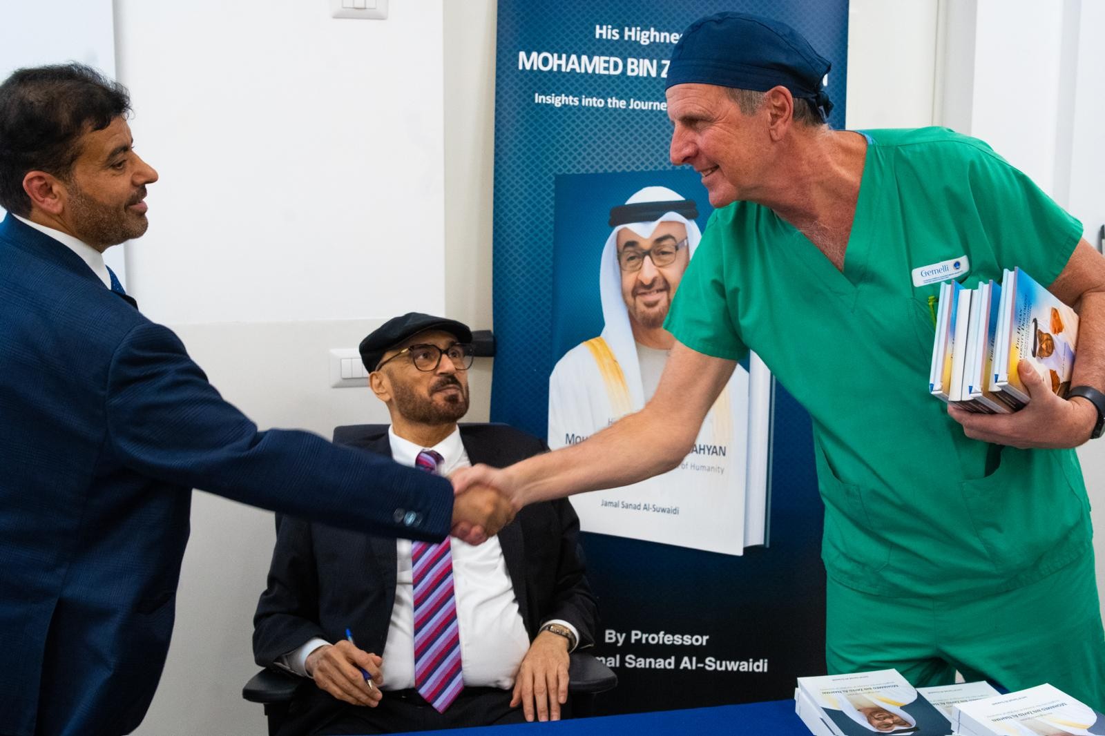 جاء ذلك بحضور عبدالله علي السبوسي، سفير دولة الإمارات العربية المتحدة لدى روما، والبروفيسور أنطونيو جاسباريني عمدي الجامعة الكاثوليكية بروما، والبروفيسور عبدالله راوح جراح القلب العالمي - الرئيس الشرفي لجامعة ساليرنو - إيطاليا، نائب رئيس جامعة لوجانو سويسرا، أستاذ جراحة القلب في الجامعة الكاثوليكية روما، ودانييلي بياتشنتيني مدير مركز جيميللي الطبي، والبروفيسور ماركو تشيكوزي استشاري - مركز جميللي الطبي، والبروفيسور أنطونيو جاسباريني عميد الجامعة الكاثوليكية – روما، إلى جانب نخبة من الأكاديميين والباحثين وأساتذة الجامعة.