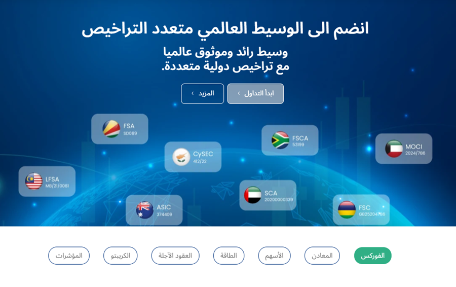 ● سيشيل (هيئة الخدمات المالية FSA) ● جنوب أفريقيا (هيئة السلوك في القطاع المالي FSCA) ● أستراليا (هيئة الأوراق المالية والاستثمارات ASIC) ● قبرص (هيئة الأوراق المالية CySEC) ● لابوان (هيئة الخدمات المالية LFSA)