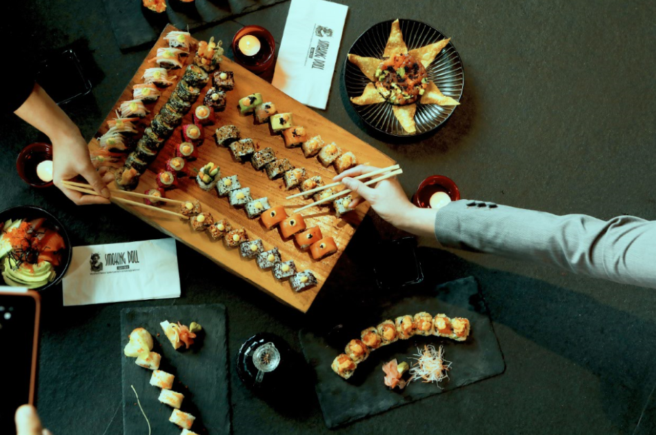 و يمكن للضيوف الاستمتاع بأجواء الرفاهية التي تجمع بين التصميمات الداخلية الحديثة والأنيقة المستوحاة من ثقافة الشرق الأقصى، مع إثراء حواس التذوق بقائمة سوشي واسعة ومميزة مقدمة من امهر الطهاة المحترفين. وتضمن هذه القائمة مأكولات شهية لا تفوت و منها “ دول رول”، و “كريسبي سالامون”، و “ذا كلاسيك كاليفورنيا رول”، و “ ذا سموكينغ دول سبيشال”، و “سموكنغ رول”.