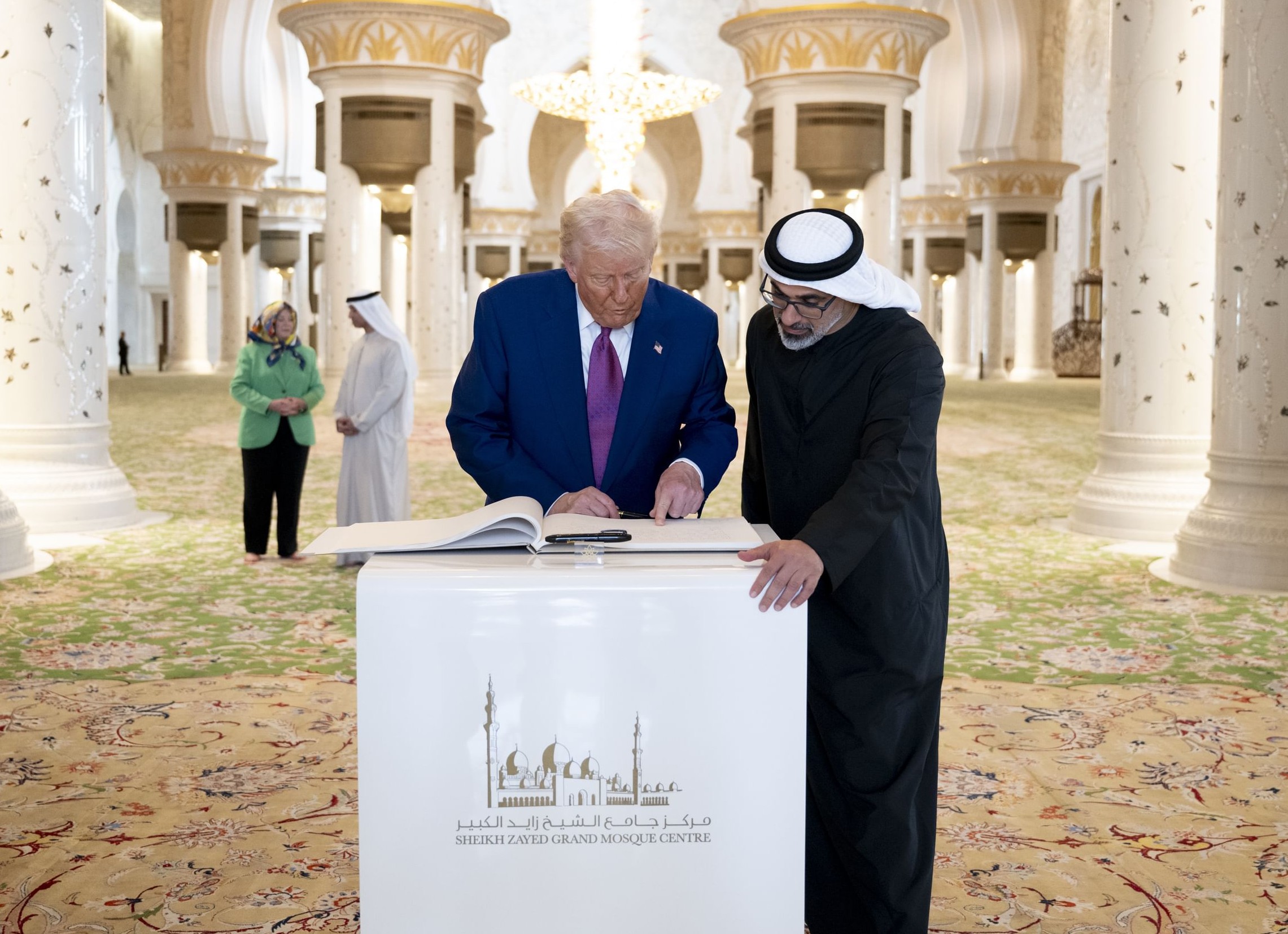 بدأ الرئيس الأمريكي دونالد ترامب، زيارته إلى الإمارات، بالتوجه إلى جامع الشيخ زايد الكبير في أبوظبي، حيث استهل الجولة بزيارة ضريح المغفور له الشيخ زايد بن سلطان آل نهيان "طيب الله ثراه"، مستذكرين إرثه ونهجه الحكيم، الذي أرسى دعائم نشر وتعزيز ثقافة التسامح والتعايش والسلام بين مختلف شعوب العالم.