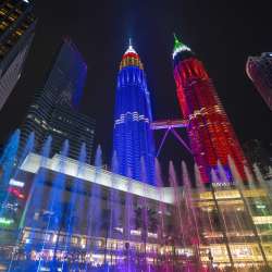 吉隆坡国油双峰塔点亮阿联酋国旗颜色,以庆祝哈立德·本·穆罕默德·本·扎耶德对马来西亚的正式访问